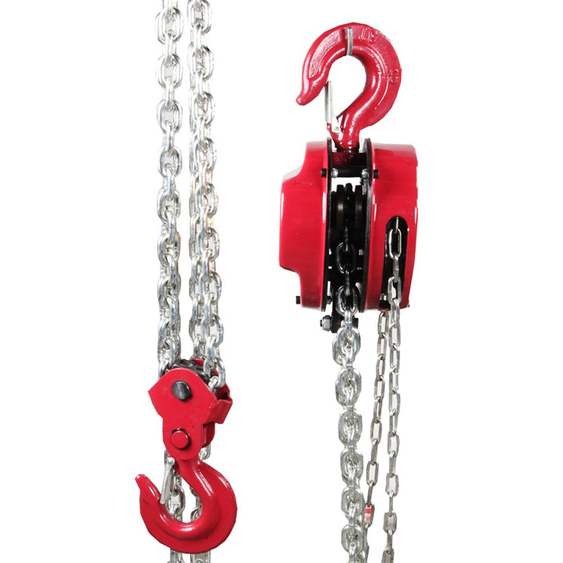Polipasto manual ideal para mover o elevar cargas pesadas en bodegas, talleres mecánicos y almacenes. Cuenta con carcasa de acero, cadenas galvanizadas, alta resistencia al desgaste y a la corrosión, construcción robusta contra golpes externos, ganchos de acero forjado, sujeción ultra fuerte con cierres de seguridad y mecanismo de doble trinquete para uso eficiente.