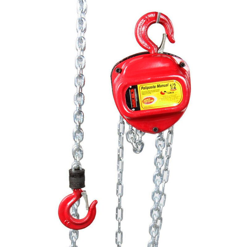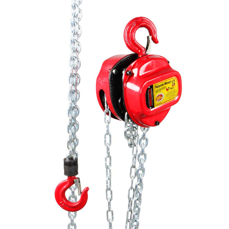 Polipasto manual ideal para mover o elevar cargas pesadas en bodegas, talleres mecánicos y almacenes. Cuenta con carcasa de acero, cadenas galvanizadas, alta resistencia al desgaste y a la corrosión, construcción robusta contra golpes externos, ganchos de acero forjado, sujeción ultra fuerte con cierres de seguridad y mecanismo de doble trinquete para uso eficiente.