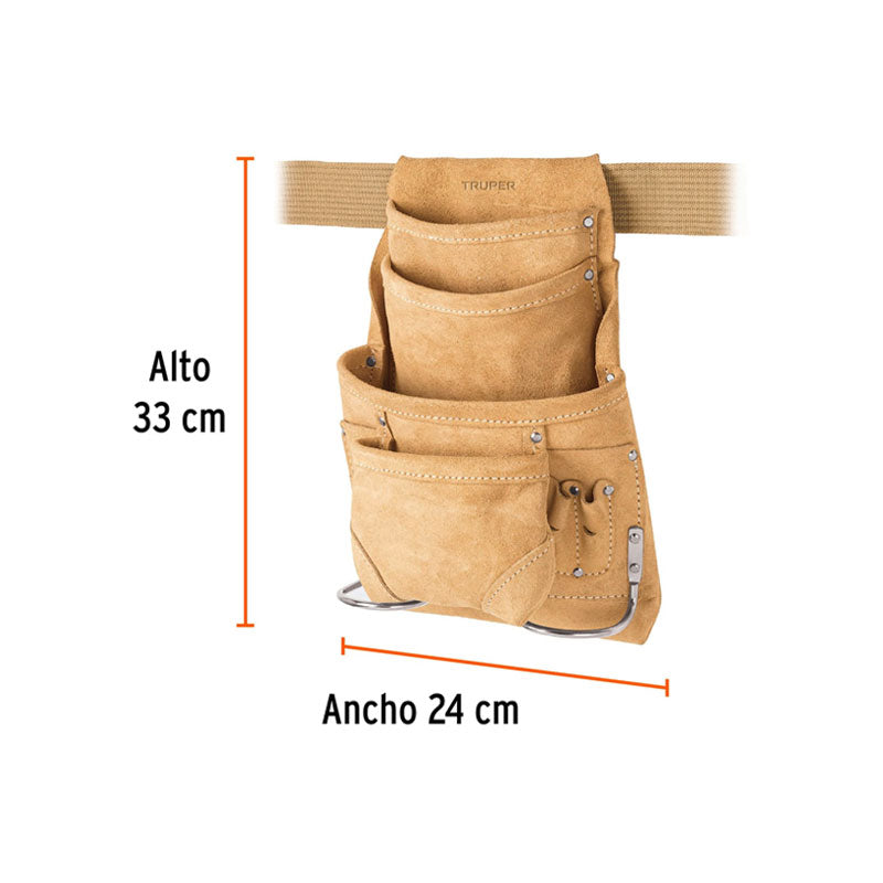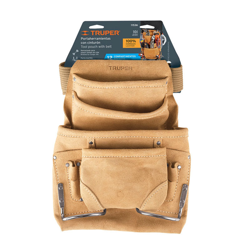 Porta herramientas de carnaza con 12 compartimentos, Truper