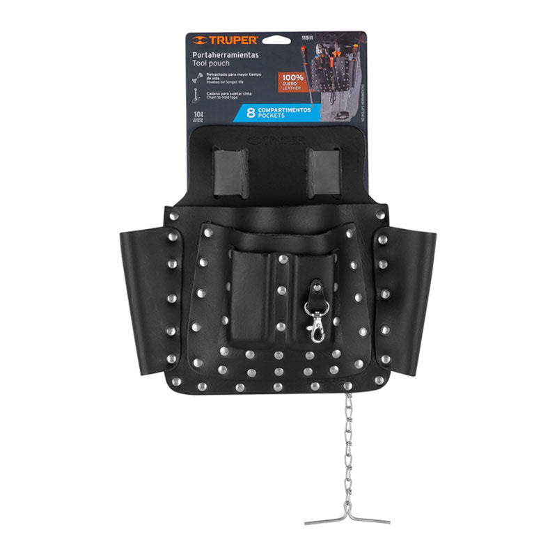Porta herramientas de cuero con 8 compartimentos, Truper