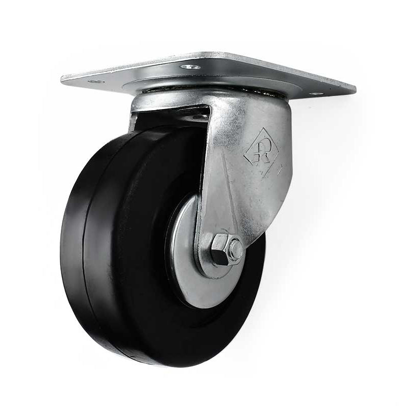 Rodaja industrial de 6? con placa giratoria y rueda de hule con balero, Rodamex