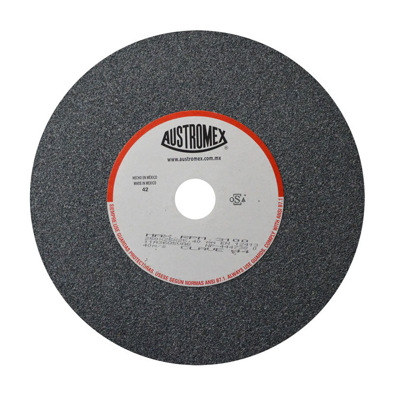 Rueda abrasiva gris de 10" x 1" x 1", para esmerilar, Austromex