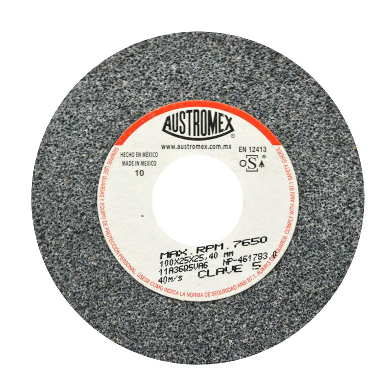 Rueda abrasiva gris de 4" x 1" x 1", para esmerilar, Austromex