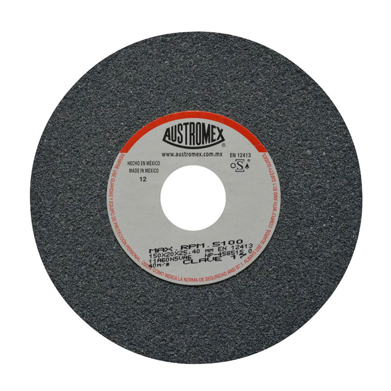 Rueda abrasiva gris de 6" x 3/4" x 1", para esmerilar, Austromex