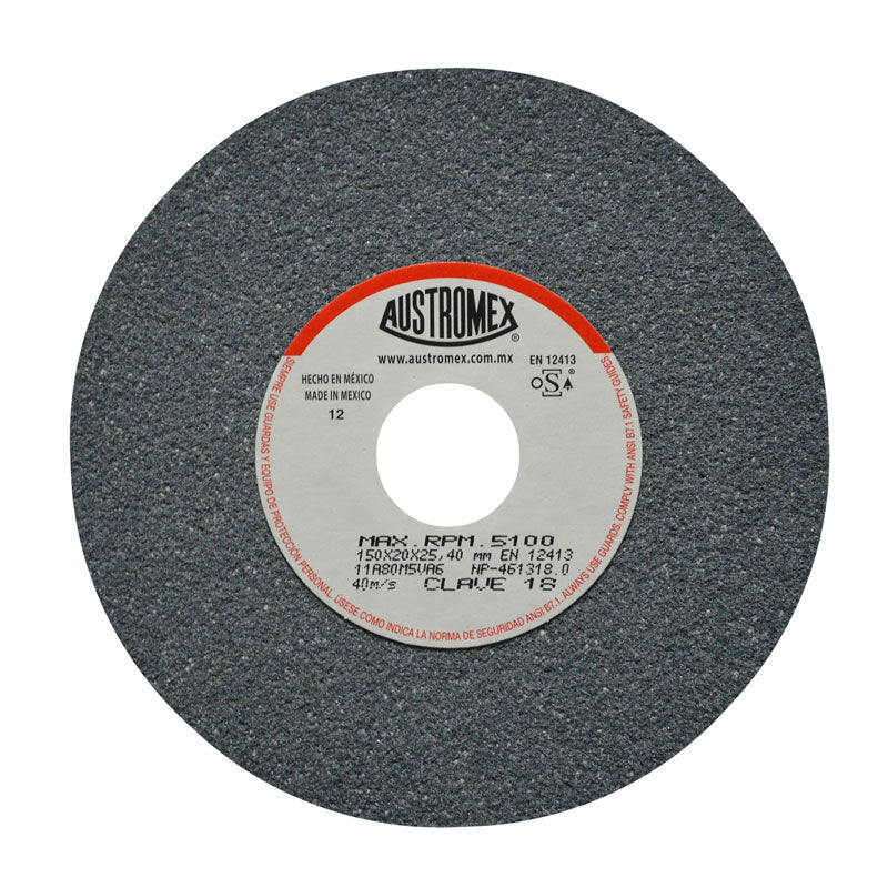 Rueda abrasiva gris de 6" x 3/4" x 1", para esmerilar, Austromex