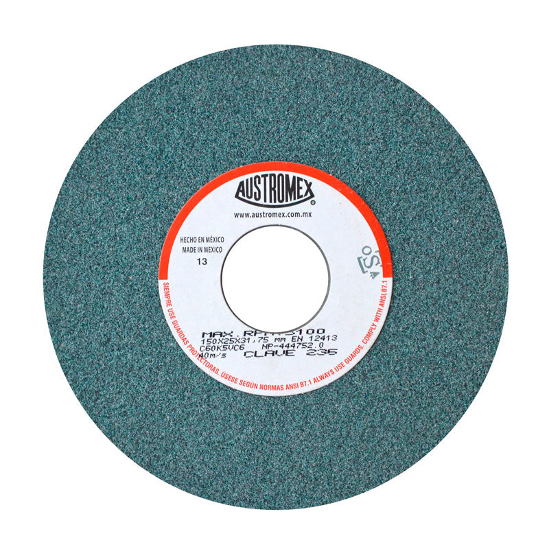Rueda abrasiva verde de 6" x 1" x 1 1/4", para rectificar y afilar, Austromex