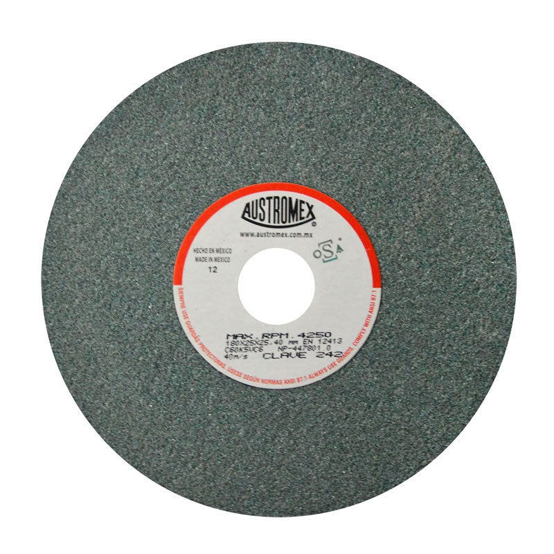 Rueda abrasiva verde de 7" x 1" x 1", para esmerilar y afilar, Austromex