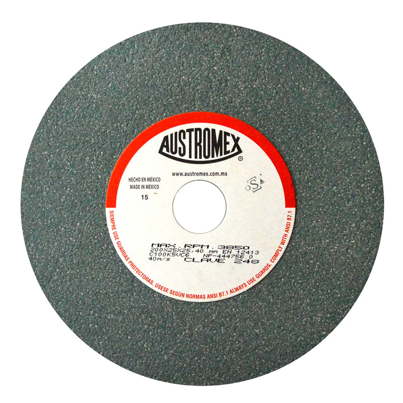 Rueda abrasiva verde de 8" x 1" x 1", para esmerilar y afilar, Austromex