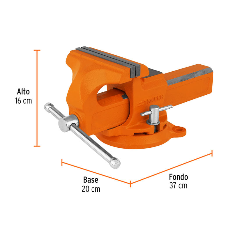 Diseñado con mordazas de acero moleteadas, mordazas inferiores redondas para sujetar tubos sin dañarlos y una base giratoria para su multi-posición.